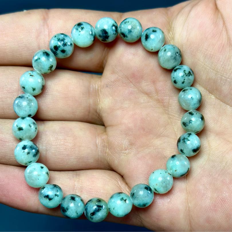 Özenle seçilmiş 8mm boyutundaki benekli jasper taşları, el işçiliği ile bir araya getirilmiştir. Bileklik, zahmetsiz bir şekilde bileğinizde rahatça taşınacak şekilde tasarlanmıştır. Elastik yapısı sayesinde, farklı bilek ölçülerine uyum sağlayarak, gün boyunca rahatlıkla kullanılabilir. Modern ve şık tasarımı ile hem günlük hayatta hem de özel etkinliklerde tarzınızı tamamlayacak bir aksesuar olma özelliğini taşır.