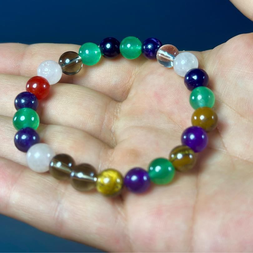 Çakra 8 mm Bileklik, enerji alanlarınızı dengeleyerek, zihinsel ve fiziksel sağlığınıza katkıda bulunur. İşte bazı faydaları: