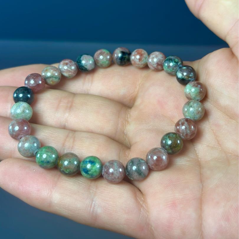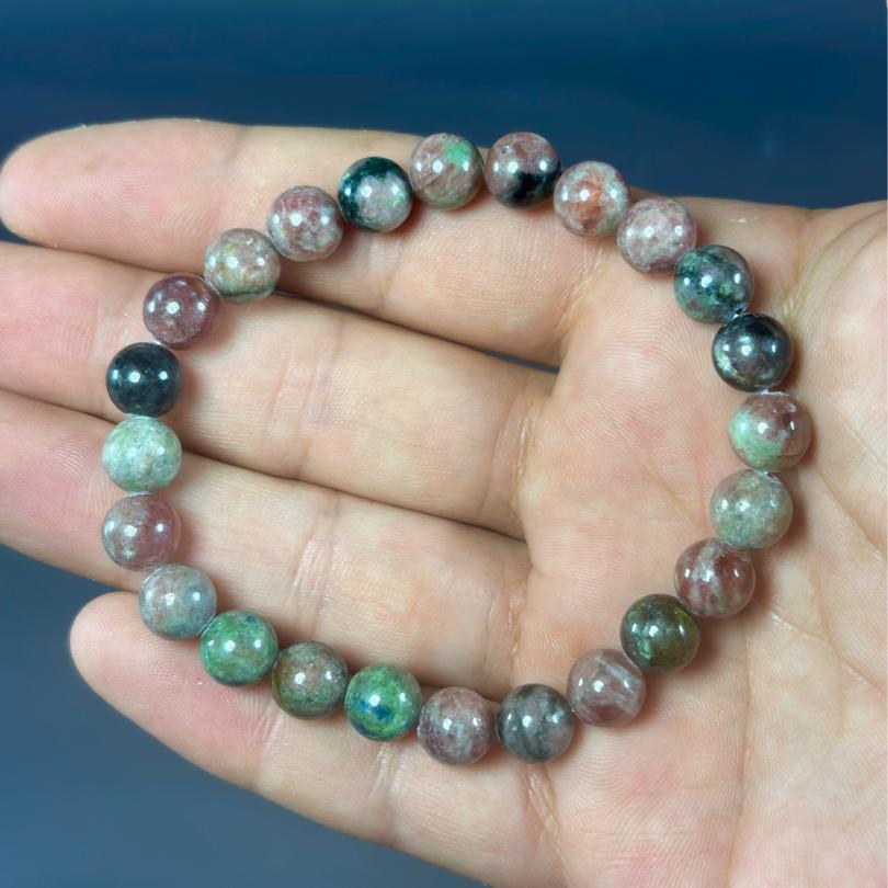 Karpuz garnet taşı, doğanın en özel ve benzersiz hediyelerinden biridir. 8mm boyutunda yuvarlak kesim taşların bir araya geldiği bu bileklik, zarafeti ve şıklığı bir arada sunar. Karpuz garnet, adını tipik yeşil ve kırmızı tonlarından alır ve bu bileklik, taşların doğal renk geçişleri ile göz alıcı bir görünüm sergiler.