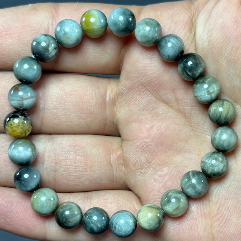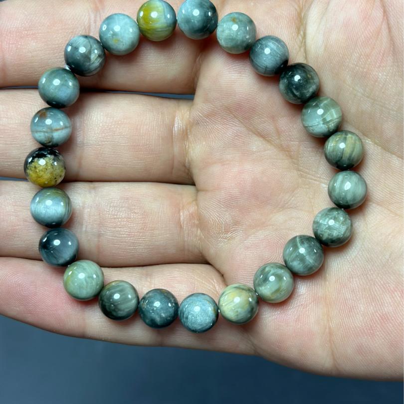Kartal Gözü Taşı, özgün enerjisi ve zarif görünümü ile dikkat çeken bir doğal taştır. Bu özel bileklik, 8mm boyutundaki Kartal Gözü taşları ile tasarlanmıştır ve hem erkekler hem de kadınlar için şıklık katmaktadır. Her bir taş, doğanın kendine has dokunuşunu taşırken, bilekliğin genel tasarımına sofistike bir hava katmaktadır.