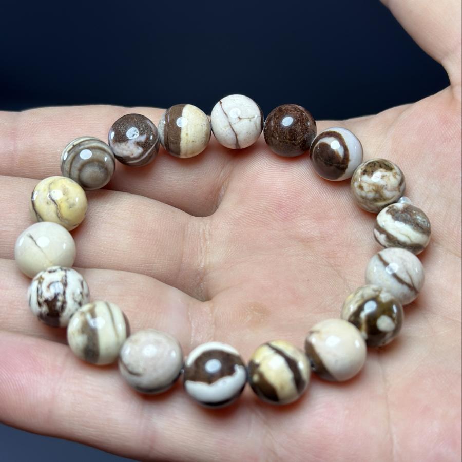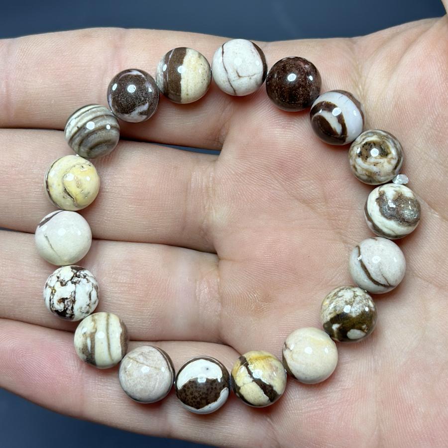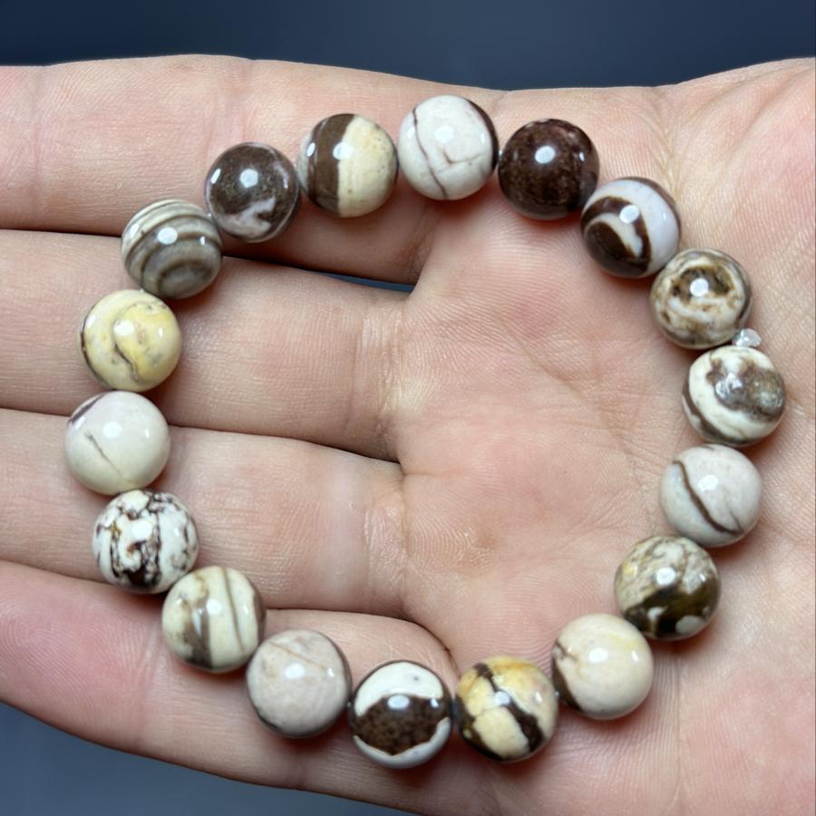 Özenle seçilmiş doğal Milk Jasper taşları, her birinin kendine özgü desenleri ve renk tonları ile bir araya getirilmiştir. Bu bileklik, şık görünümü ile her yaştan ve her tarzdan insana hitap edebilme özelliğine sahiptir. Hem günlük kullanıma hem de özel günlerde şıklığınızı tamamlamak için idealdir.