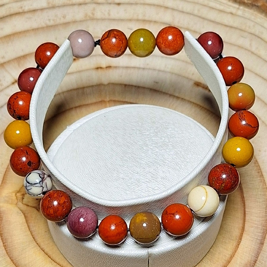 Mokait Jasper taşının büyüleyici özelliği ve zarif tasarımı, onu sadece bir aksesuar olmanın ötesine taşıyor. Her biri doğal ve eşsiz bir parça olan bu bileklik, kendinize veya sevdiklerinize alabileceğiniz anlamlı bir hediye seçeneğidir. Doğanın güzelliklerinden ilham alan bu bileklik ile tarzınıza zarafet ve anlam katın.