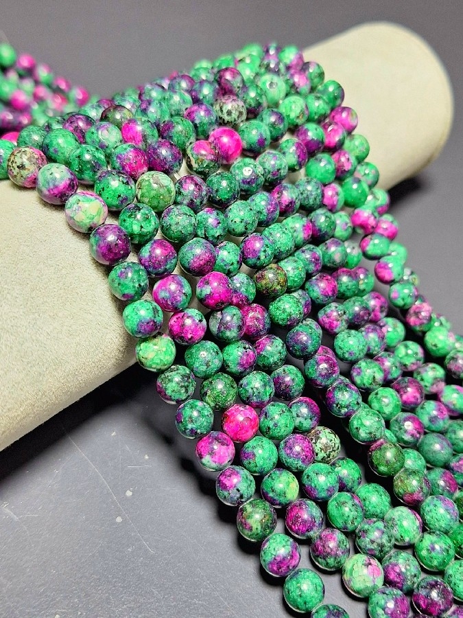 Rubyzoisit, doğal güzellikleri ve şifalı özellikleri ile bilinen özel bir taş olup, bu 8 mm'lik dizide en zarif haliyle karşınıza çıkıyor.