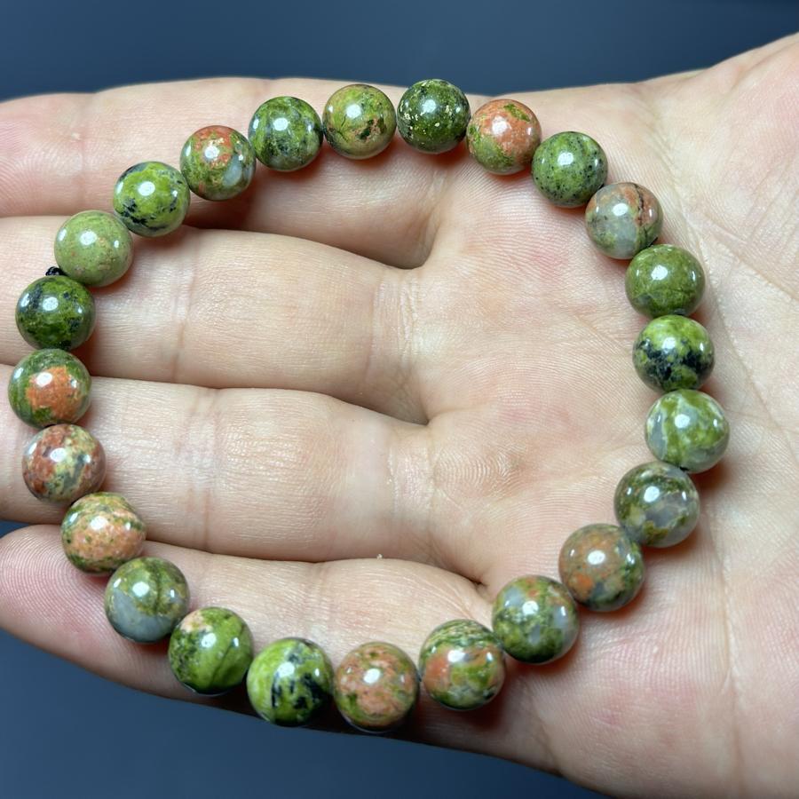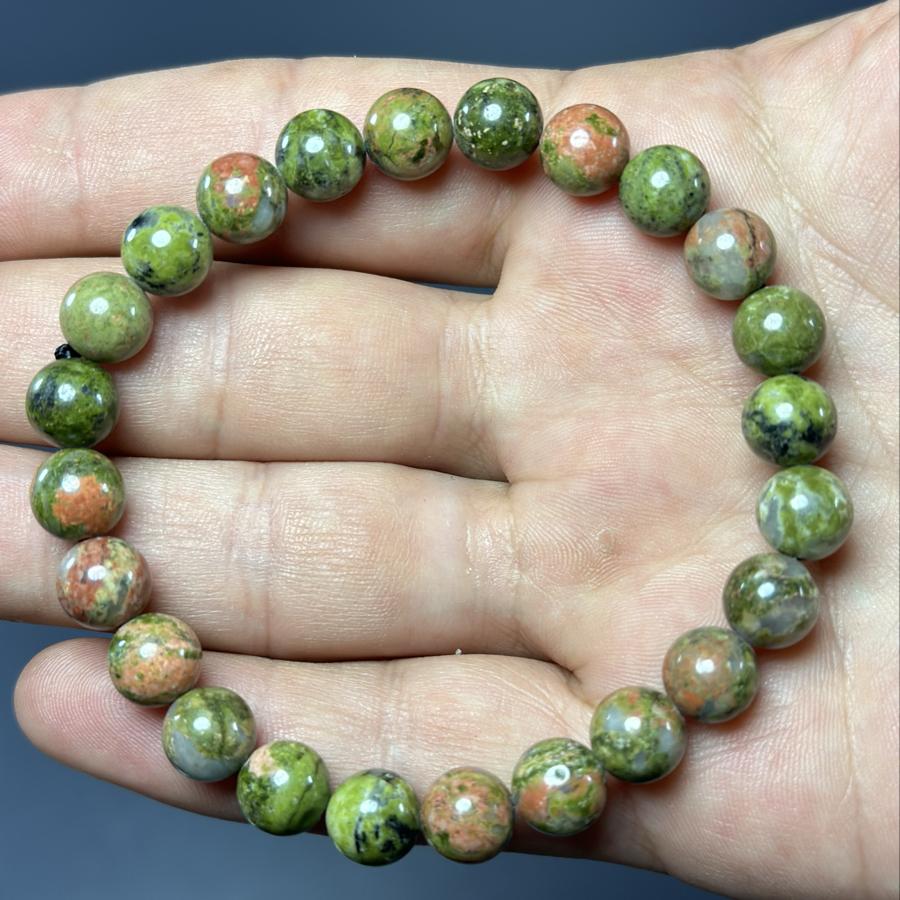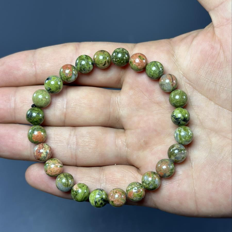 Unakit 8 mm bileklik, sadece şık bir aksesuar değil, aynı zamanda ruhsal ve duygusal dengeyi desteklemek için doğal bir kaynaktır. Kendinize veya sevdiklerinize hediye edebileceğiniz özel bir parçadır. Doğal taşların enerjisi ile günlük yaşamınıza pozitif bir dokunuş katmak için bu bileklikte yer almayı unutmayın!